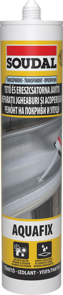 Az Aquafix tetőjavító egy kiváló minőségű, plaszto-elasztikus, egykomponenses tömítő, kopolimer bázissal. Repedések, illesztések tömítésére ereszcsatornák és épületszerkezeti elemeknél. Kiválóan tapad szinte minden homlokzati anyaghoz (pl fém, fa, üveg, kő, stb.). Nedves felületen, akár esős időben is használható.